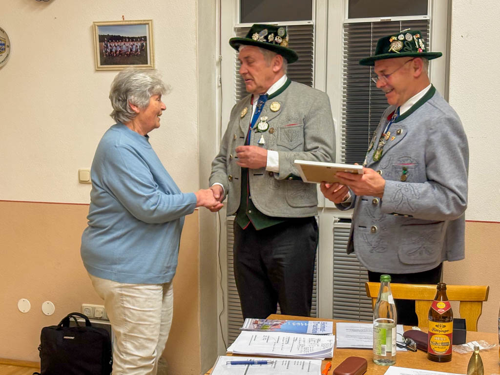 In den anschließenden Berichten wurde deutlich, wie aktiv das Vereinsleben im vergangenen Jahr war. Es wurden insgesamt zwölf Proben absolviert, darunter auch eine Gemeinschaftsprobe mit dem Trachtenverein Landsberg. Besonders hervorgehoben wurden zudem die stimmungsvolle Maiandacht sowie der Vereinsausflug nach Landshut und zum Trachtenkulturzentrum Holzhausen. Vor dem Gaufest wurde ein geselliger Grillabend organisiert. Auch die Dirndl waren engagiert und trafen sich unter anderem zu einem gemeinsamen Bastelnachmittag, bei dem filigrane Haarnadeln gefertigt wurden.